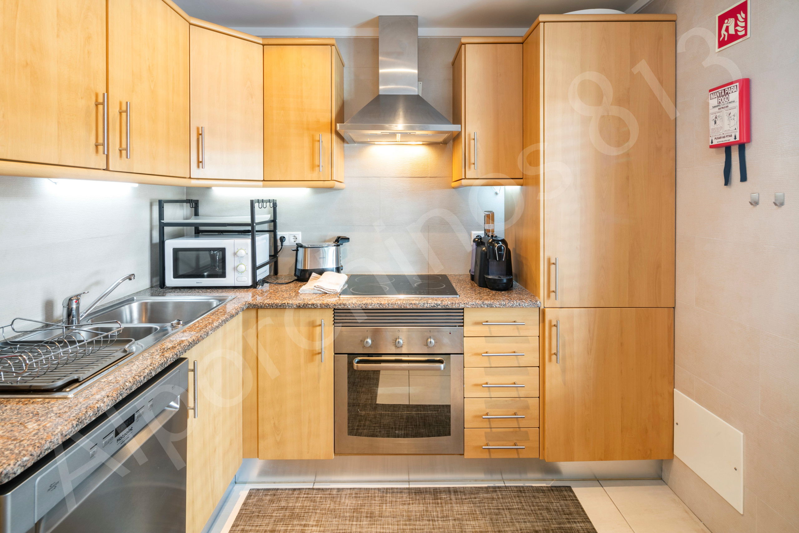 O alojamento apresenta uma disposição bem equipada de um quarto com uma cama de casal e um sofá-cama adicional, acomodando confortavelmente até quatro hóspedes. O ar condicionado assegura uma temperatura agradável durante toda a sua estadia, enquanto a cozinha independente está totalmente equipada com aparelhos modernos, incluindo um frigorífico, máquina de lavar louça, forno, micro-ondas e máquina de café, permitindo-lhe preparar deliciosas refeições com facilidade.